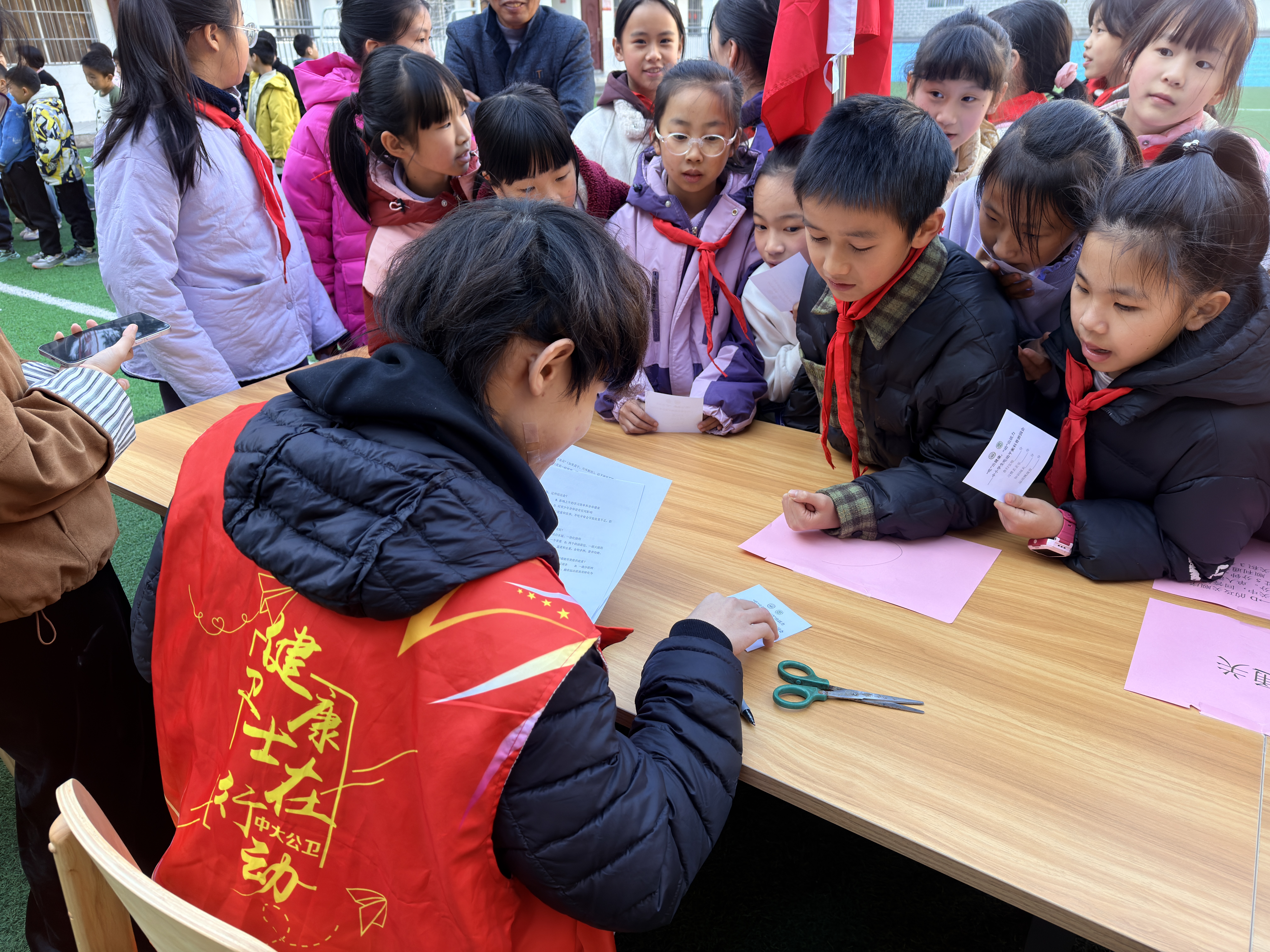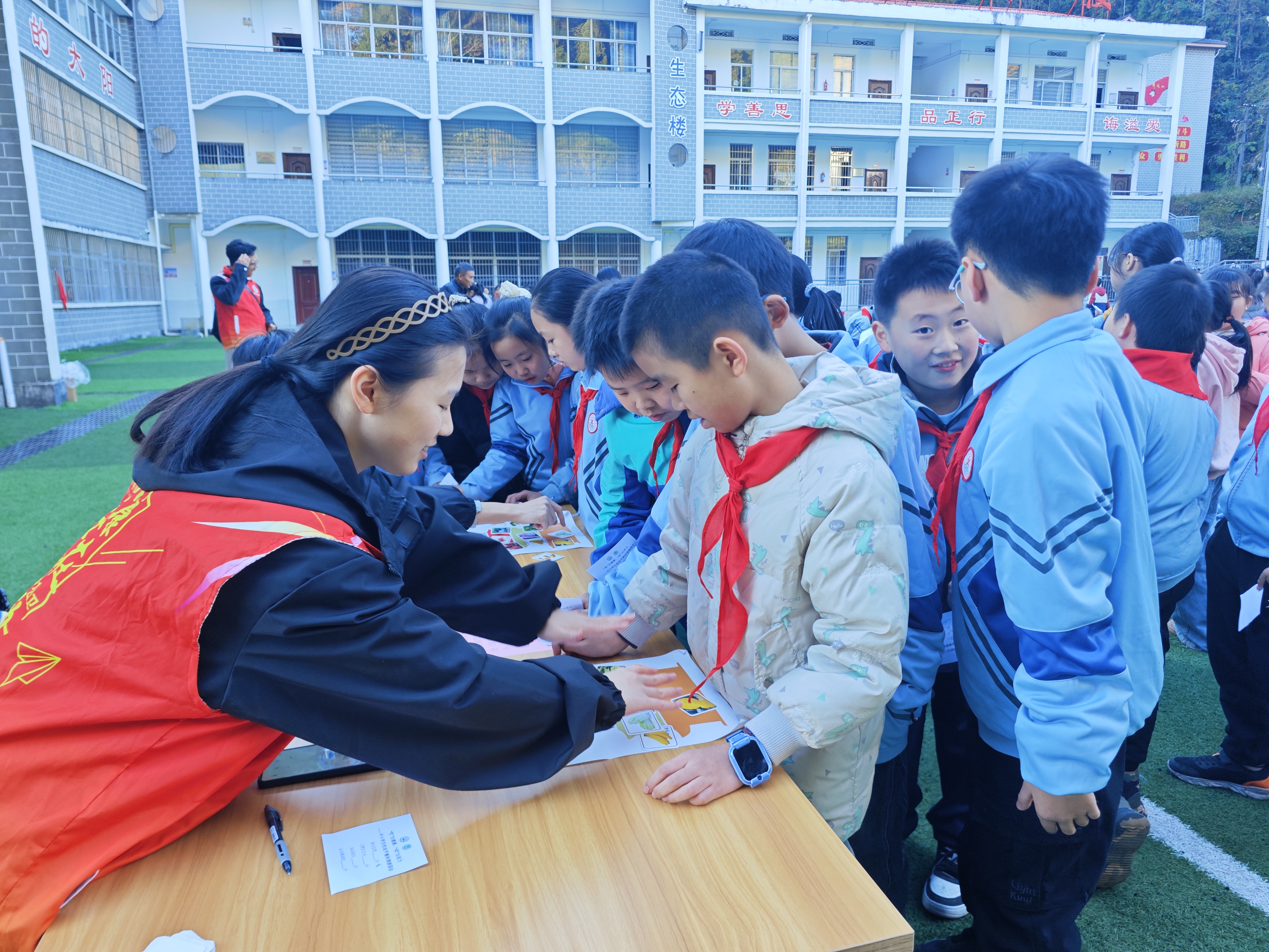 “原来吃饭和运动有这么多学问!”现场气氛热烈,欢声笑语不断。通过积分兑奖的形式,中大文创笔记本、书签、冰箱贴、便签等奖品送到了孩子们手中。这次活动不仅为老区的孩子们普及了健康知识,更在港澳台学子心中种下了服务社会、回馈祖国的种子。