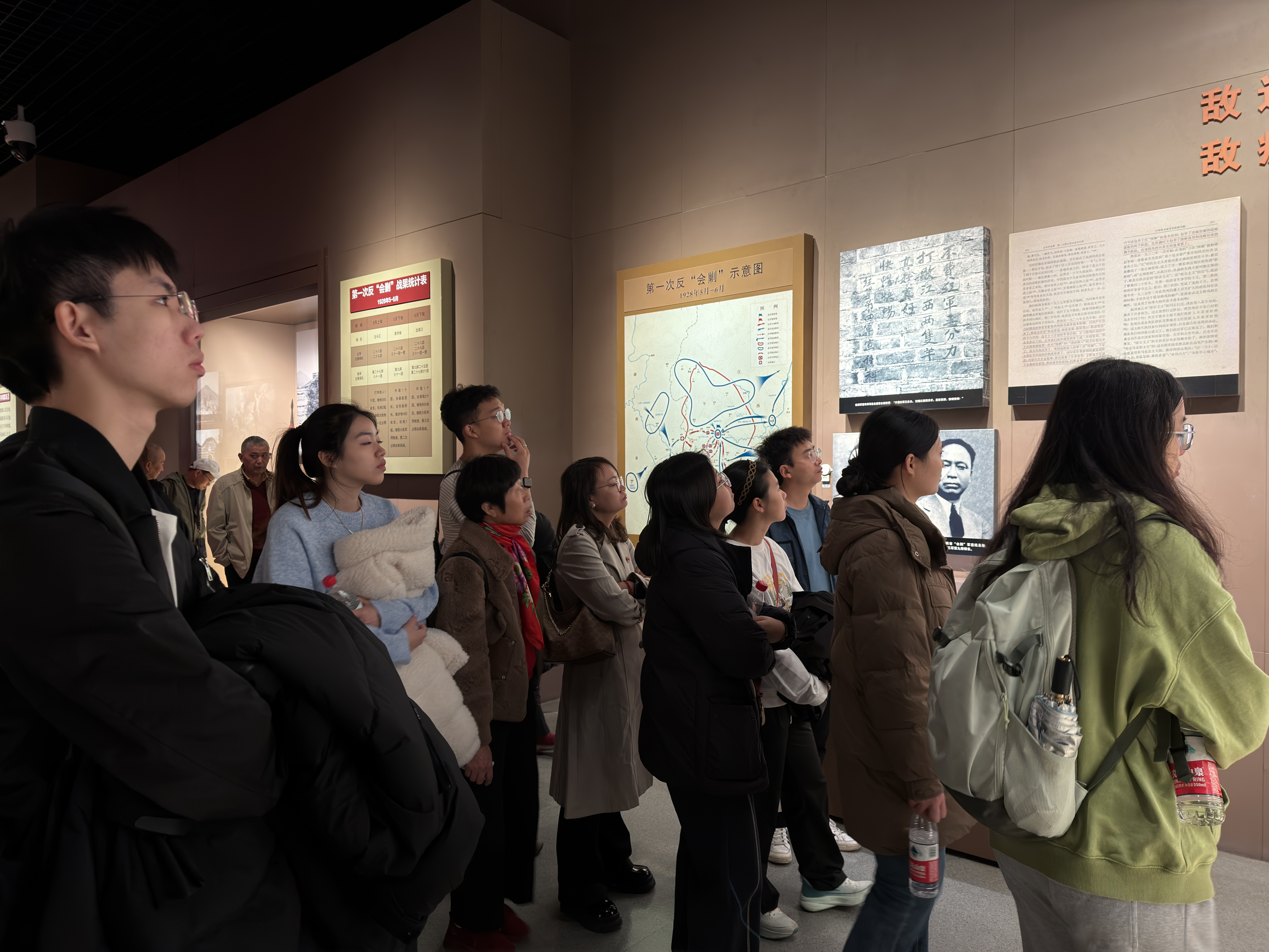 同学们紧跟讲解员的步伐,时而驻足凝视珍贵的革命文物,时而低头记录关键的历史节点。通过专业的解读,大家不仅理清了中国革命“农村包围城市”道路的形成脉络,更深刻理解了井冈山精神的丰富内涵。
