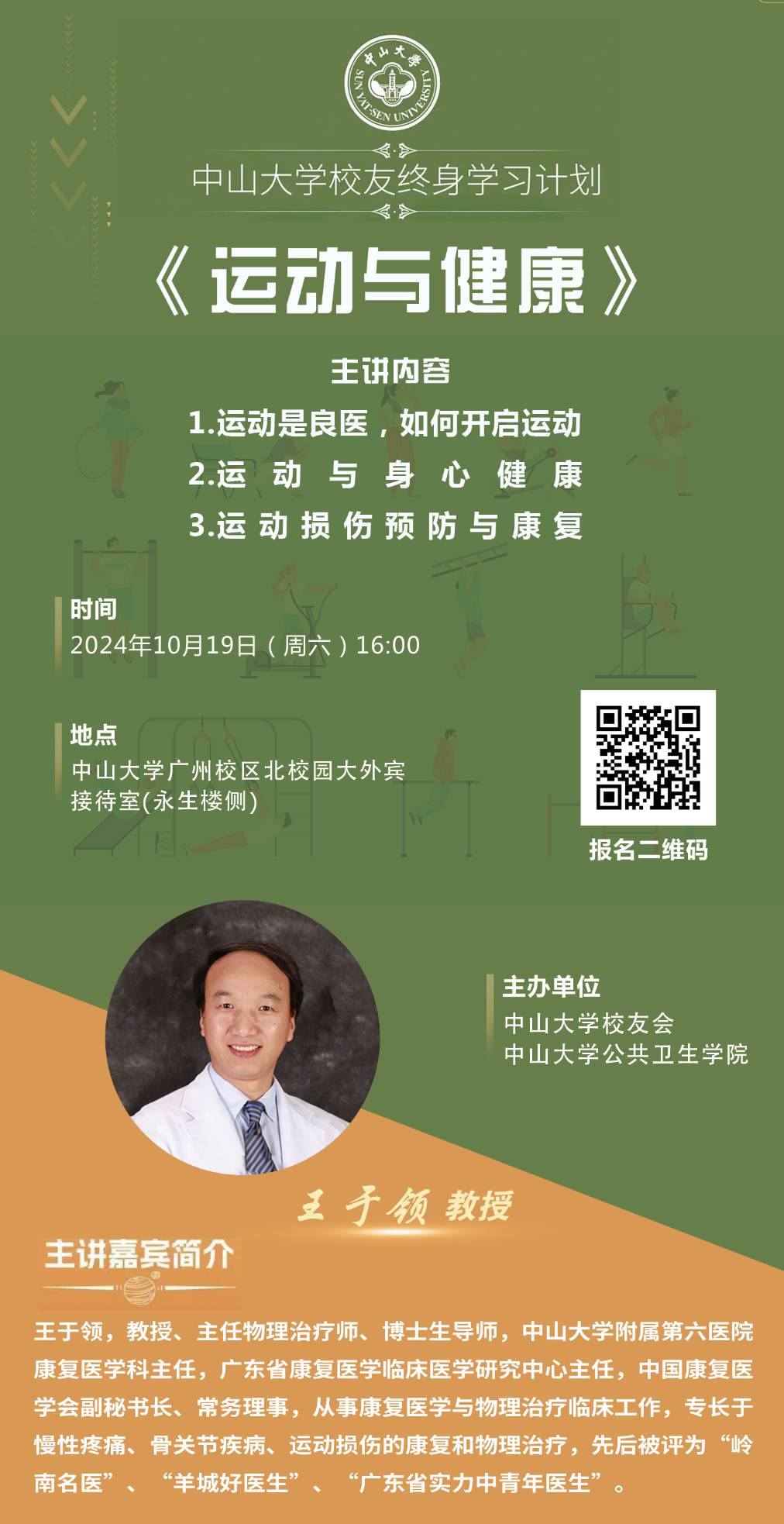 王于领:教授、主任物理治疗师、博士生导师,91吃瓜 附属第六医院康复医学科主任,广东省康复医学临床医学研究中心主任,中国康复医学会副秘书长、常务理事,从事康复医学与物理治疗临床工作,专长于慢性疼痛、骨关节疾病、运动损伤的康复和物理治疗,先后被评为“岭南名医”、“羊城好医生”、“广东省实力中青年医生”。