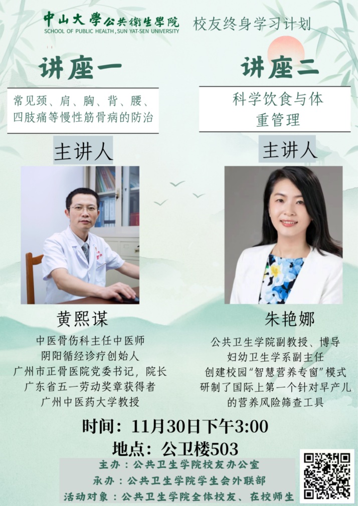 校友终身学习计划是校友系列活动的重要组成部分,是师生和校友持续学习和交流的平台。通过专业知识的分享与交流,不仅增强了校友与母校之间的联系,更提升了参与者的健康素养,体现了学院服务社会、促进全民健康的责任担当。