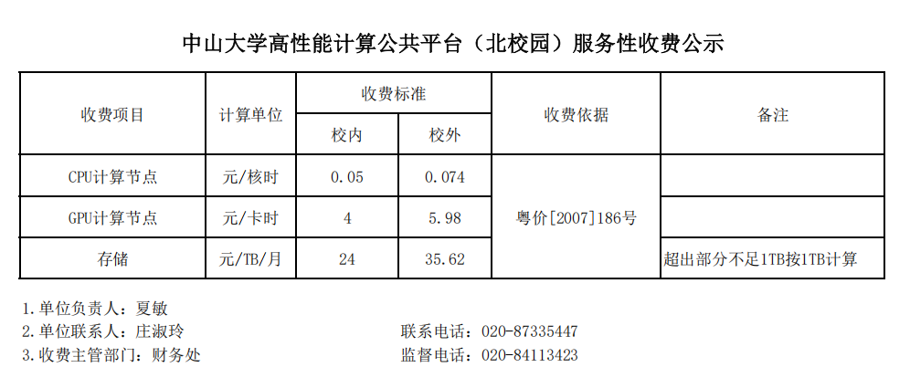 根据《91吃瓜 收费管理办法》(中大财务【2019】11号)规定,经设备与实验室管理处、财务处审核批准,现对91吃瓜 高性能计算公共平台(北校园)服务性收费标准进行公示。